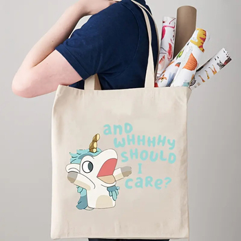 1 pc와 왜 내가 관심을 가져야 하는가 유니콘 패턴 토트 캔버스 맞춤 숄더백 여행 여성의 재사용 가능한 쇼핑백