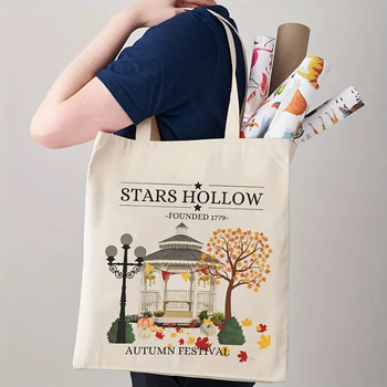 1pcStars 중공 패턴 토트 캔버스 맞춤형 숄더백 맞춤 인쇄 로고가있는 여행 여성용 재사용 가능한 쇼핑백